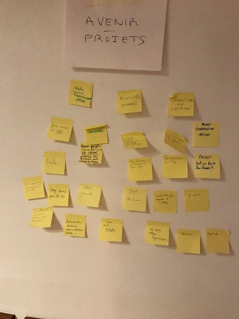 Les souhaits pour l’avenir : l’école, l’animation du village, la sérénité, la convivialité, l’extension du village. Et aussi lors de la discussion : un lieu pour les adolescents (il y a 136 habitants de 0 à 18 ans) ; l’anticipation des infrastructures pour éviter un turn-over en installant ce que les habitants peuvent attendre tout au long de la vie de leur famille (prochain lycée à Chaumont, animation du village, repas des séniors…), cadre pour associer les habitants (commissions, marches exploratoires).